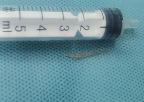 取出的鱼刺长达2.31厘米,两头都相当尖锐。