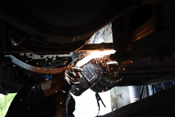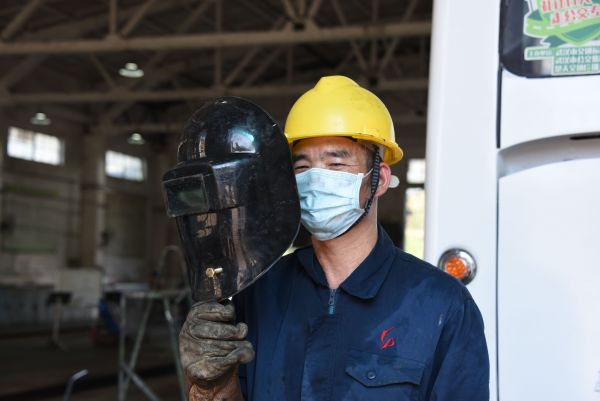 8月15日下午,武汉公交四公司陶家岭维修车间,高保组55岁的电焊工辛金江手里拿着一个电焊钳正在地槽下面对公交车进行焊接。辛金江在高保组从事电焊工工作30余个年头,面对这样的高温闷热天气,他早已经习惯。