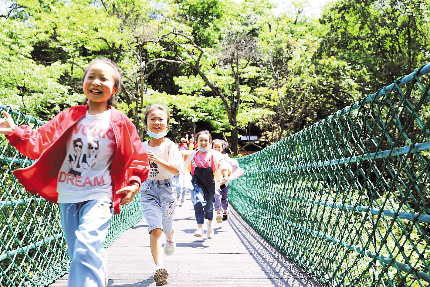 孩子们在咸丰县坪坝营景区森林里玩耍。(通讯员 罗洋 摄)