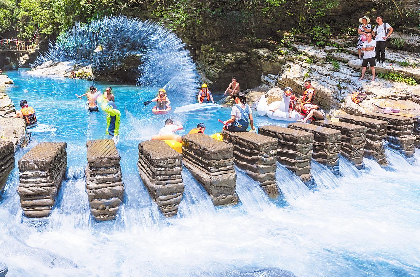 游客在建始县地心谷景区体验水上项目。(通讯员 赵恩秋 摄)