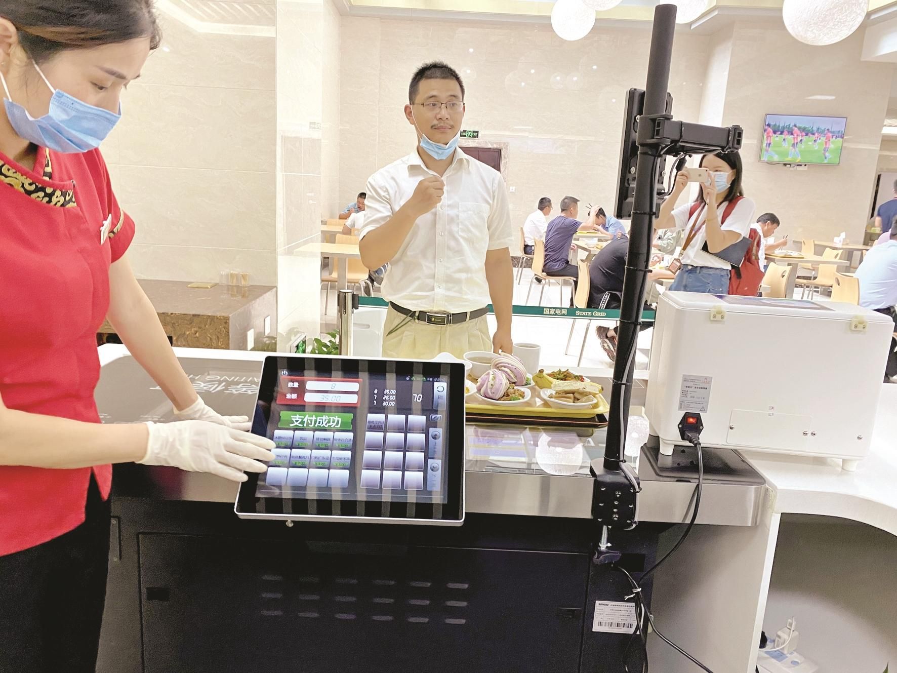 这名叫黄浩的员工告诉记者,他每天中午都在食堂吃。“好多人都羡慕我们的食堂,潮!”他认为,这种就餐方式“无接触让人放心。后台自动记录用餐习惯算法分析,可提供科学膳食搭配,很健康”。