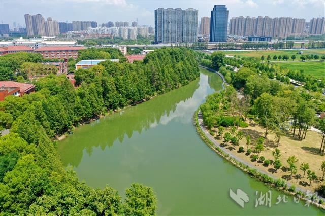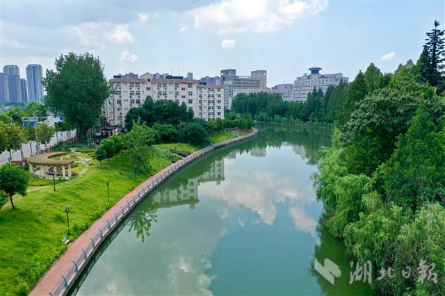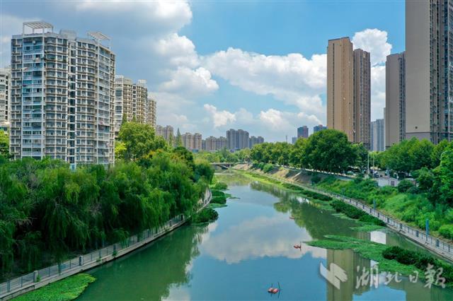 2020年8月17日,航拍镜头下的武汉市洪山区南李路附近的巡司河,在蓝天白云的映衬下美如画卷。曾经这里是困扰周边居民、学生数十年的臭水沟,被称为“熏死河”。在武汉市近两年的大力整治下,巡司河水质有了明显改善,河道拓宽了,流水畅通,河两岸新添了绿色景观,水面种植有净化水质的绿植。巡司河沿线环境大幅提升,周边居民生活出行幸福感大大提升。(湖北日报全媒记者 李溪 摄)