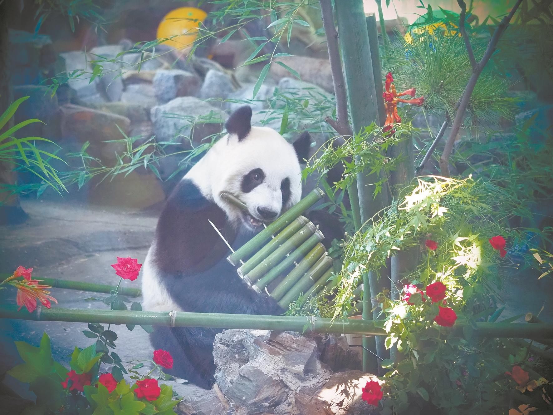 大熊猫饲养员曹骏介绍,“胖妞”活泼好动,冰镇蛋糕既健康美味又能消暑,月季就在园内采摘的,为它的生日制造一点点浪漫。