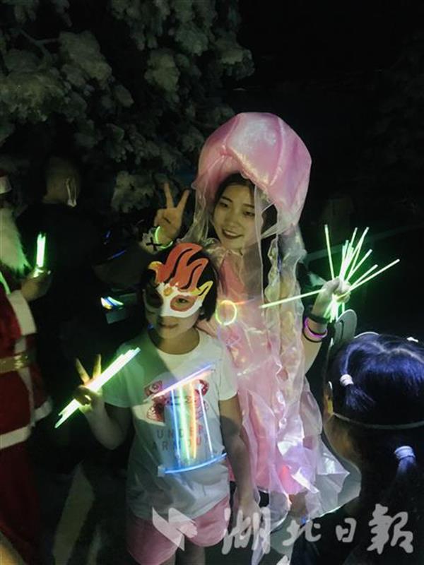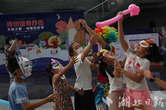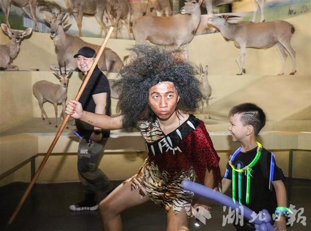 湖北日报讯(通讯员邓志强)“小朋友们,你们好啊,我是马门溪叔叔……”在孩子们一声声惊叹中,“恐龙”来到帐篷阵前与孩子们互动。8月15日、16日,武汉自然博物馆举办“大河之歌·动物狂欢节”博物馆奇妙夜活动,来自武警武汉支队的50余名最美军属和45组武汉市民亲子家庭组成联合探险队,走进武汉园博园,开启神奇博物馆夜游之旅。