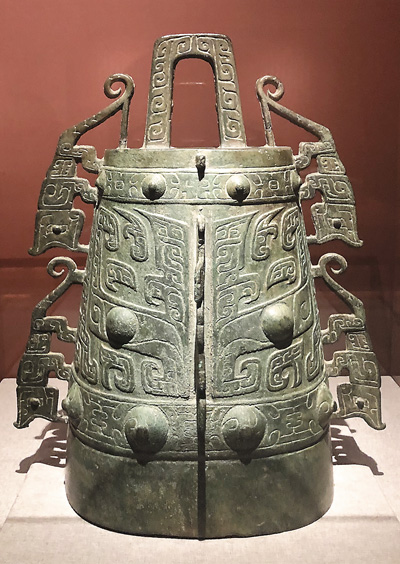 先秦至汉代,随着礼乐制度的建立和发展,乐器更加复杂化,出现了编钟、编磬等大型乐器。从商代兽面纹大铙、西周四虎镈、夔龙纹编钟,到春秋虢太子墓铜钲、战国淹城句鑃、汉代虎钮淳于,可以看出青铜乐器的发展脉络。