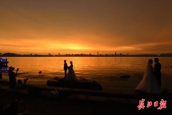长江网8月18日讯 8月17日傍晚,一场雷阵雨没有惊扰到东湖畔乘凉和拍照的市民游客,雨后的晚霞洒满波光粼粼的湖面,令人宛若置身海滨。 (记者苗剑 摄影报道)