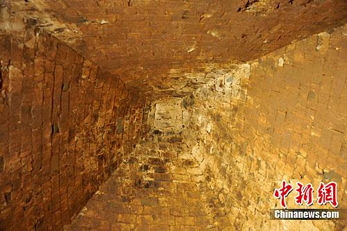 但其实,潘伟斌踩到的并不是墓室底部,而是一个疏松的土堆。“土堆是虚的,我一下就滚到下面去了。手里拿着的手电筒也摔得没影了。当停住的时候才感觉到胳膊支住了一个壁,摸着了一个砖壁。”