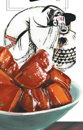 那首《念奴娇·赤壁怀古》,宋词里的战斗机。这次,注意到其中那句“一樽还酹江月”。樽,酒具,酹,洒酒入江。可见,当时,怀古的苏轼也是喝上了,而且也是夜里喝:否则无以“江月”。你以为,面对赤壁这样的题材,不喝它几口,能怀出什么好古啊?想多了。而把盏怀古,必须佐之以肴,几个下酒菜还是要有的,苏轼也不是一个反对下酒菜的人。他还不是素食主义者,顶好是开荤、见肉,坚执“红烧肉主义”——后之东坡肉,赖此或已著先声。