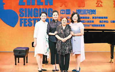 郭兰英(右二)与雷佳(右三)等在第一届“深圳声乐季·中国声乐人才培养计划”大师公开课现场