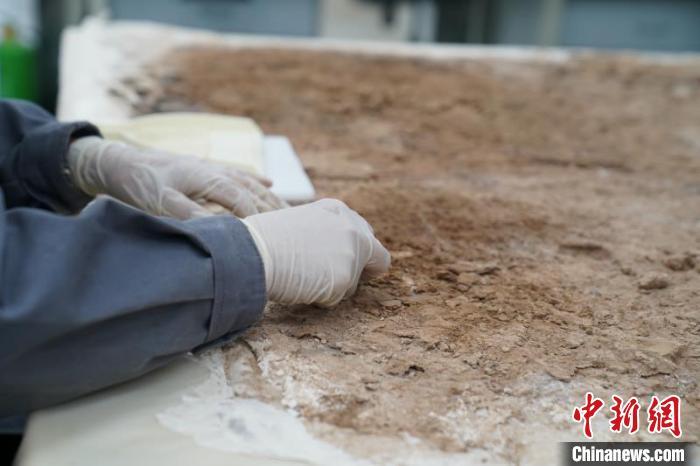 资料图:唐李道坚墓壁画室内清理修复。陕西省考古研究院供图