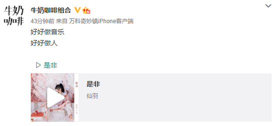 不久前,牛奶咖啡组合指出何洛洛新歌《舒克贝塔2020》抄袭《明天,你好》,称:“《舒克贝塔》是很喜欢的国产原创动漫,请不要愧对‘原创’二字”,并要求平台下架该抄袭歌曲。据悉,该歌曲的作曲者、制作人是刘佳,其代表作有《青春修炼手册》《宠爱》《大梦想家》等。随后,牛奶咖啡组合更是发文疑似斥责抄袭一事:“好好做音乐,好好做人。”