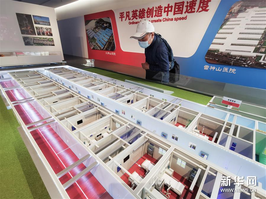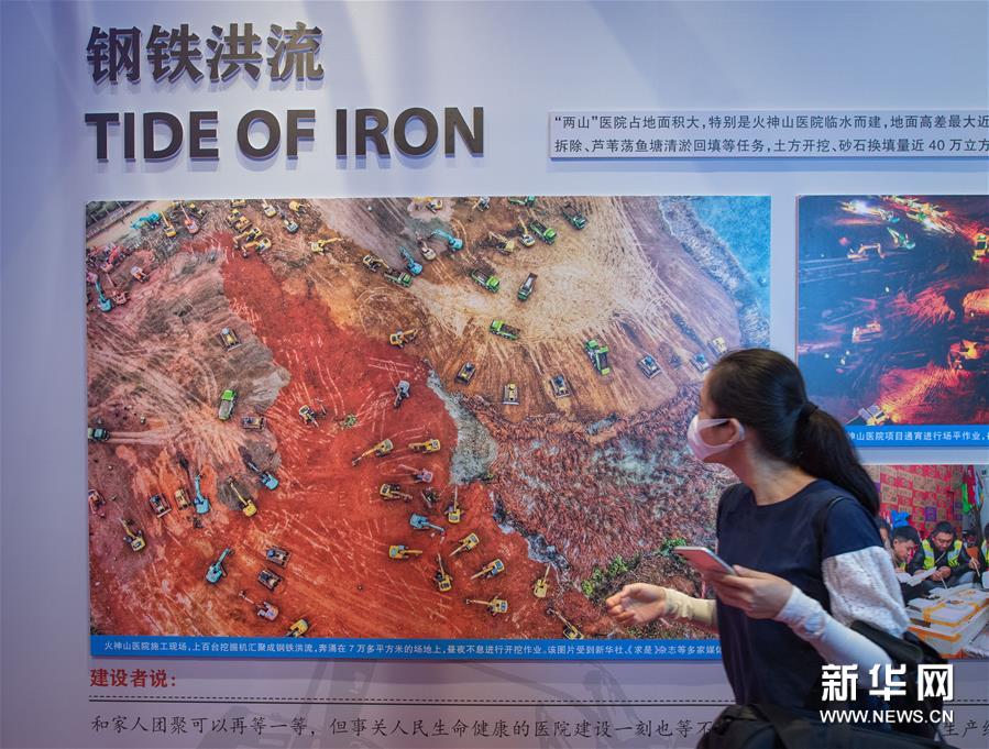 8月19日,参观者在中国建筑科技馆内观看火神山、雷神山医院建设纪实展览。新华社记者 肖艺九 摄
