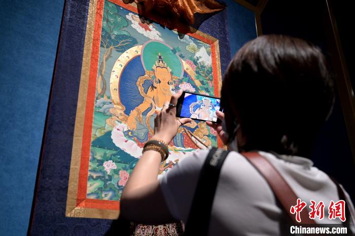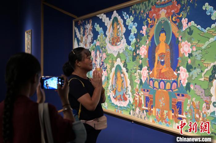 中新网南宁8月20日电(杨陈 俞靖)8月20日,《一瞻·一礼——青海多杰旦民族职业技术学校旧勉唐派唐卡作品展》在广西南宁博物馆开展。52幅旧勉唐派唐卡作品及一幅藏文书法作品,让壮乡民众近距离感受藏族文化艺术魅力。