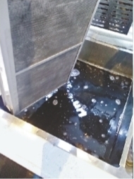 工作人员现场取出使用了一个月的滤芯清洗时流出的黑水。