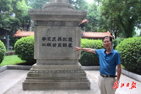 熊秉坤的长孙熊永铸带记者看“辛亥武昌起义工程营发难处”纪念碑。记者万建辉 摄