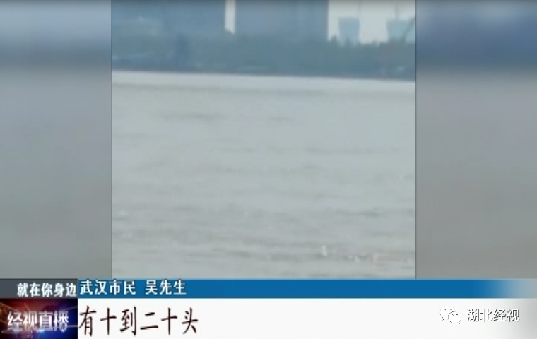 昨天,武汉市民吴先生在江边钓鱼时,偶然看到十几头长江江豚出现在江面嬉戏跳跃。中科院水生所专家表示, 在武汉城区长江段看到这么多江豚现身,实属罕见!