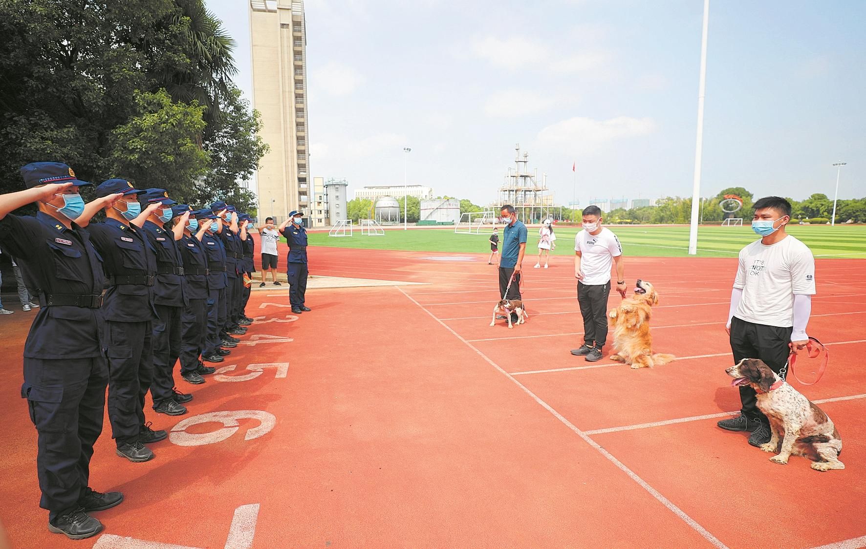 现任训导员敬礼 搜救犬“图图”激动得站立回礼