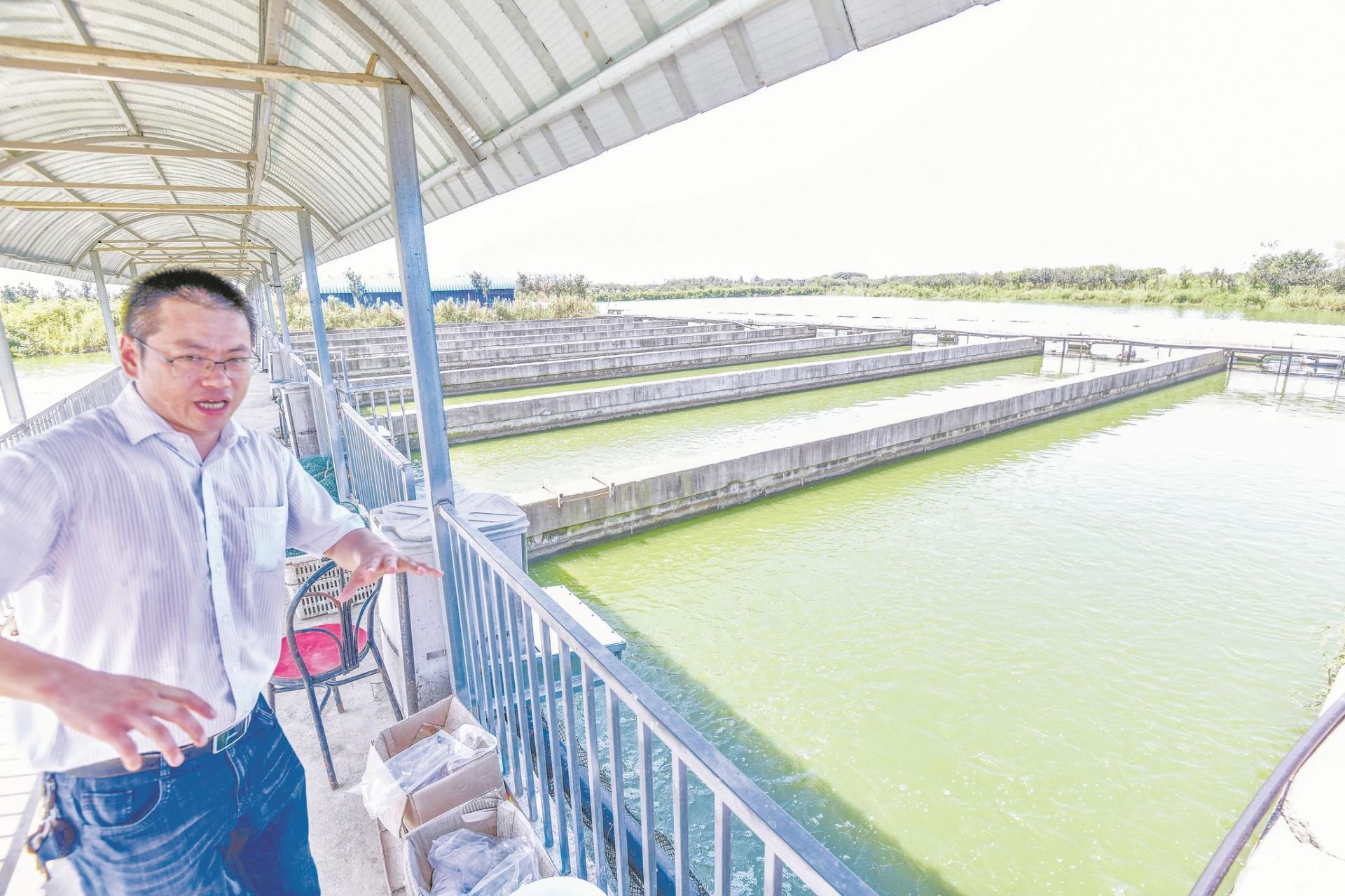 由于每天都有社区、商超和市场的订单,群鱼荟合作社里,专门开辟了一个个成鱼暂养池,方便养殖户根据订单要求,随时捕捞活鱼、宰杀加工。