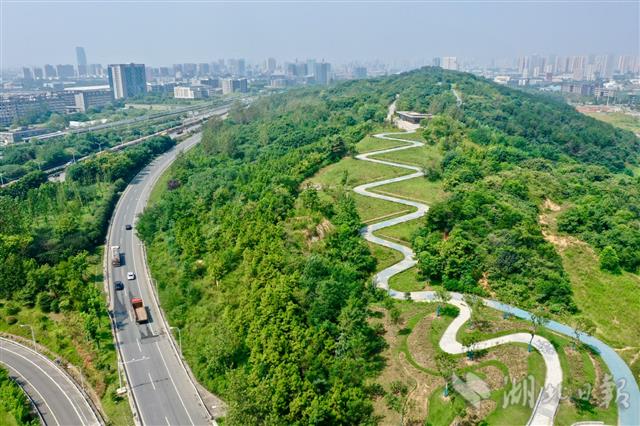 2020年8月23日,位于武汉东湖高新区的黄龙山,曾经黄土裸露,如今植被繁茂,绿道成环。