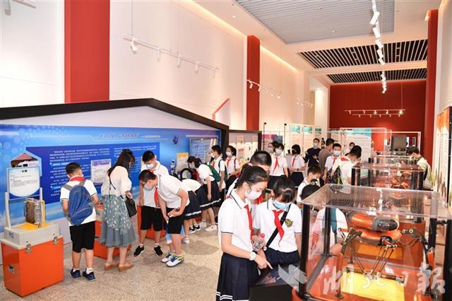 8月23日,武汉规划展示馆展厅,观众们正在参观科技展览。当日,全国科技活动周启动,并设立湖北分会场。本届科技活动周主题为“科技战疫 创新强国”,主要包括科技战疫成效展示、科技创新成就展示、体验美好生活活动和科技助力脱贫攻坚四个方面。今年湖北科技活动周分设启动式、科普惠民、科普赛事、科艺、科普云课堂、科普云展示、市州联动、闭幕式等8大版块。全省17个市州将举办市级科技活动周,公众能通过网络在线直播平台、网上展览馆、微信公众号展播等丰富的方式,观看科技活动周实况并参与相关科技、科普活动。(湖北日报全媒记者 魏铼 摄)