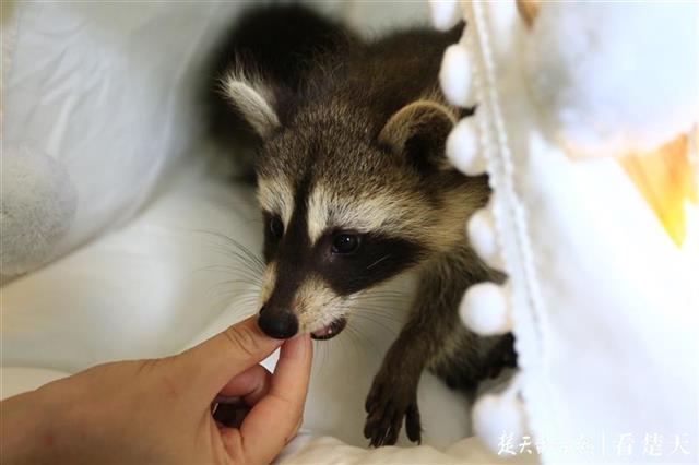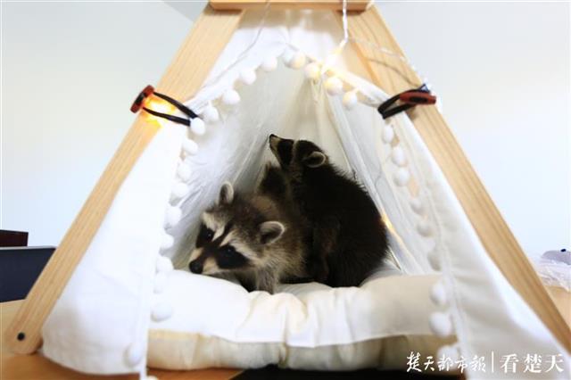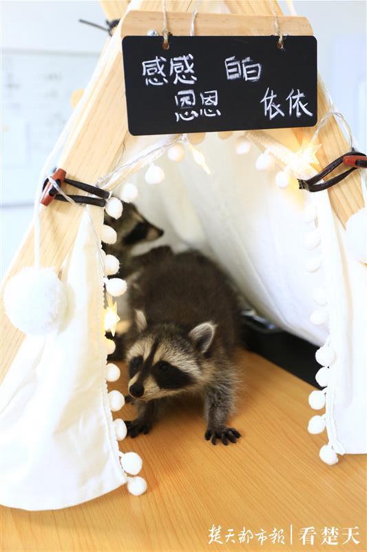 浣熊属哺乳纲食肉目浣熊科的一种动物,源自北美洲,因其食前要将食物在水中洗濯,故名浣熊。楚天都市报记者看到,目前出生满一个月的四只小浣熊幼仔身体状况良好,他们生活在武汉海昌极地海洋公园的小动物王国里。