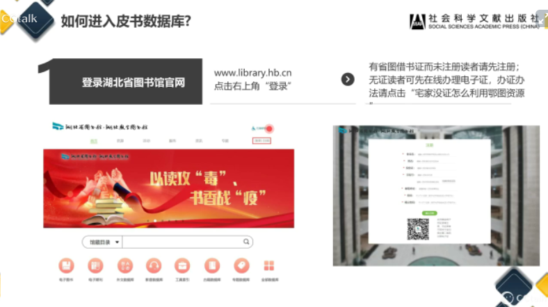 如何进入省图皮书数据库呢?登录湖北省图书馆官网(www.library.hb.cn)→点击右上角“登录”(有省图借书证而未注册读者请先注册;无证读者可先在线办理支付宝电子证)→资源→所有资源→工具索引类皮书数据库。