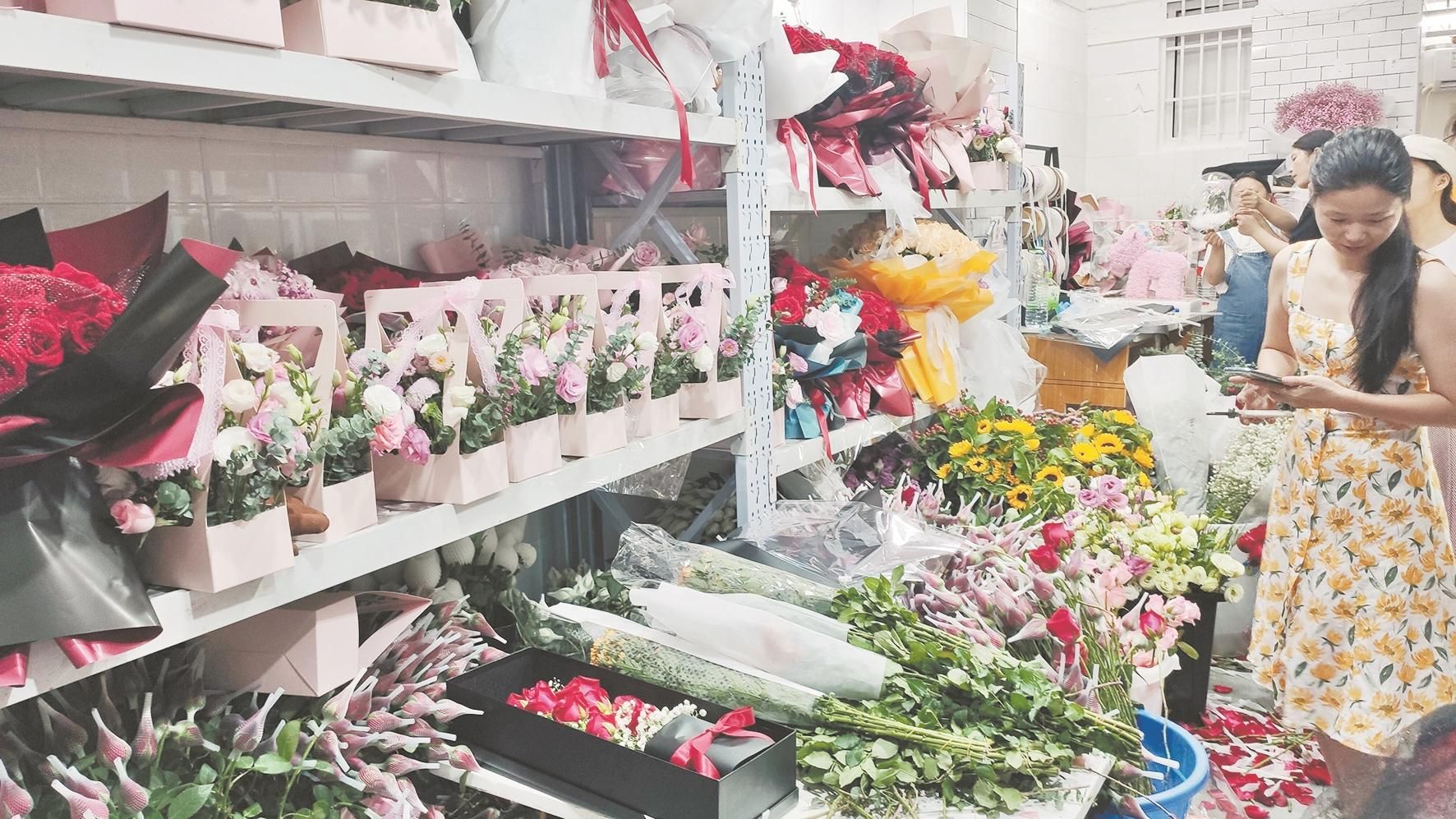 至于鲜花方面,“订单比平时增加了一倍以上,价格比去年同期涨了约两成。”汉口循礼门一家花店店主林女士说,今年受疫情和汛情影响,花价不稳定,目前价格同比去年上涨约两成。今年流行的月亮花束、星星花束,样式新颖独特,销量很不错。