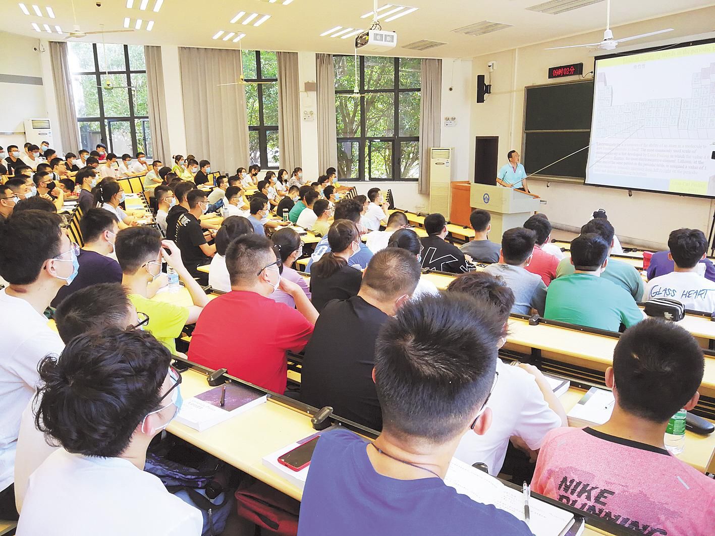 在武大文理学部第五教学楼,经济与管理学院2019级学生鹿畅参加了数学补习,还打算邀上好久没见面的同学一起去图书馆。物理科学与技术学院2018级学生李展参加补习的课程则是《电动力学》。由于他的补习课程均安排在上午,他计划每天下午去图书馆自习,大学英语四六级考试9月就要举行了,他想抓紧时间背单词。