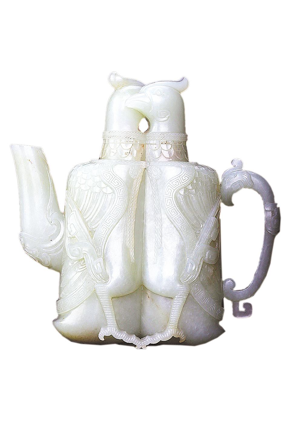 清 “乾隆”款双凤交颈玉执壶 (@动脉影 摄 武汉博物馆供图)