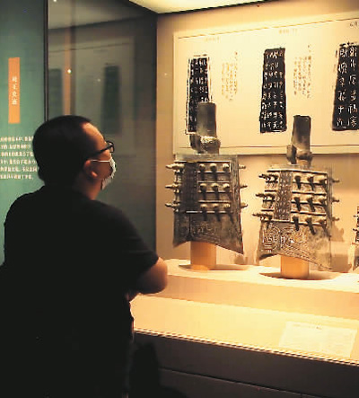 展览中的青铜器铭文特写