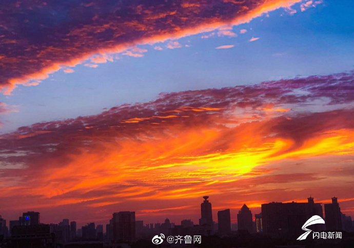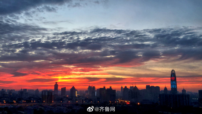 齐鲁网·闪电新闻8月24日讯 8月24日傍晚,济南出现壮丽的火烧云景观,西落的太阳像巨大的火球,把浮云染成了红色,神奇而美丽。