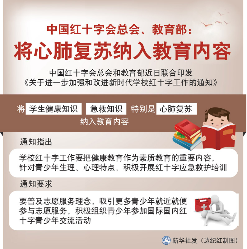 图表:中国红十字会总会、教育部:将心肺复苏纳入教育内容