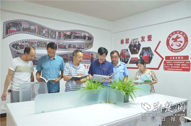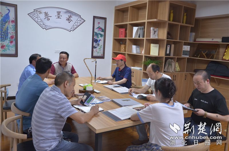 稻香诗社成员在得胜镇文化站相互交流诗歌内容。通讯员供图