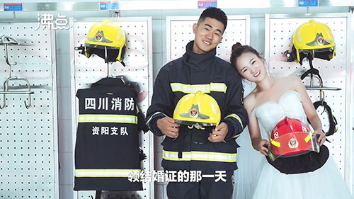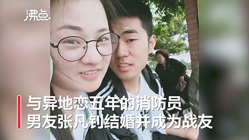 资阳消防消防员张凡钊,2016年和女友高品相识。二人每年只能见一次面。今年,高品跨越1400余公里,从济南来到资阳,应聘消防文员和张凡钊成了战友。高品说:“只要能偷偷看他一眼就足够了,他在哪,家就在哪”。