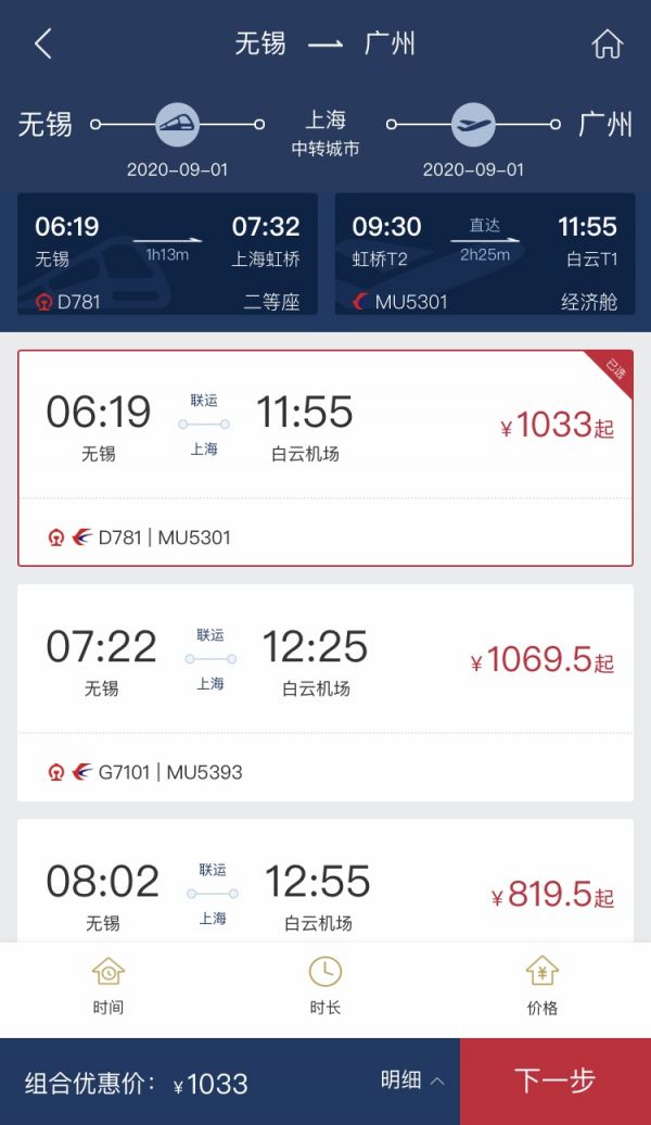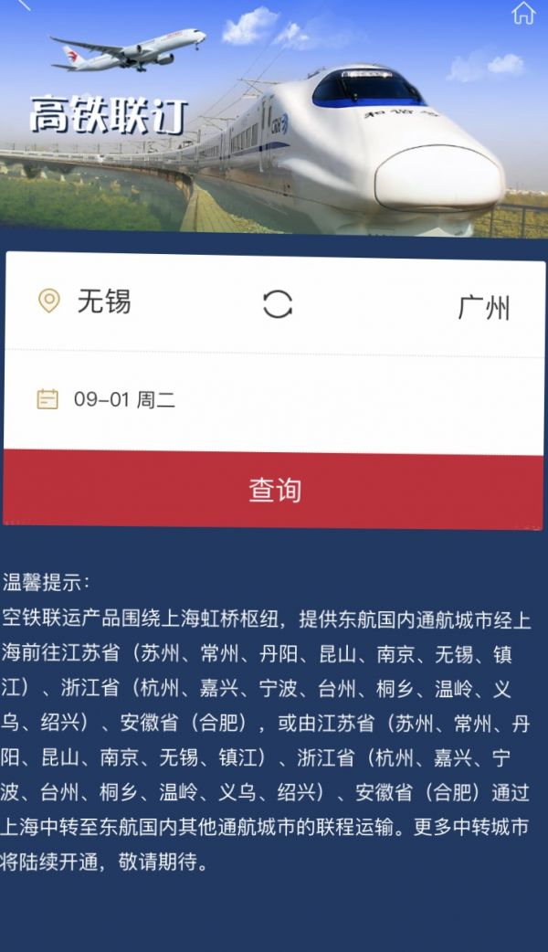 旅客可通过任一方的App,一站式购买东航、上航航班与高铁车次组合的联运客票,开启了铁路车次、航班信息的数据共享,“飞机+高铁”的组合出行模式愈发便捷。