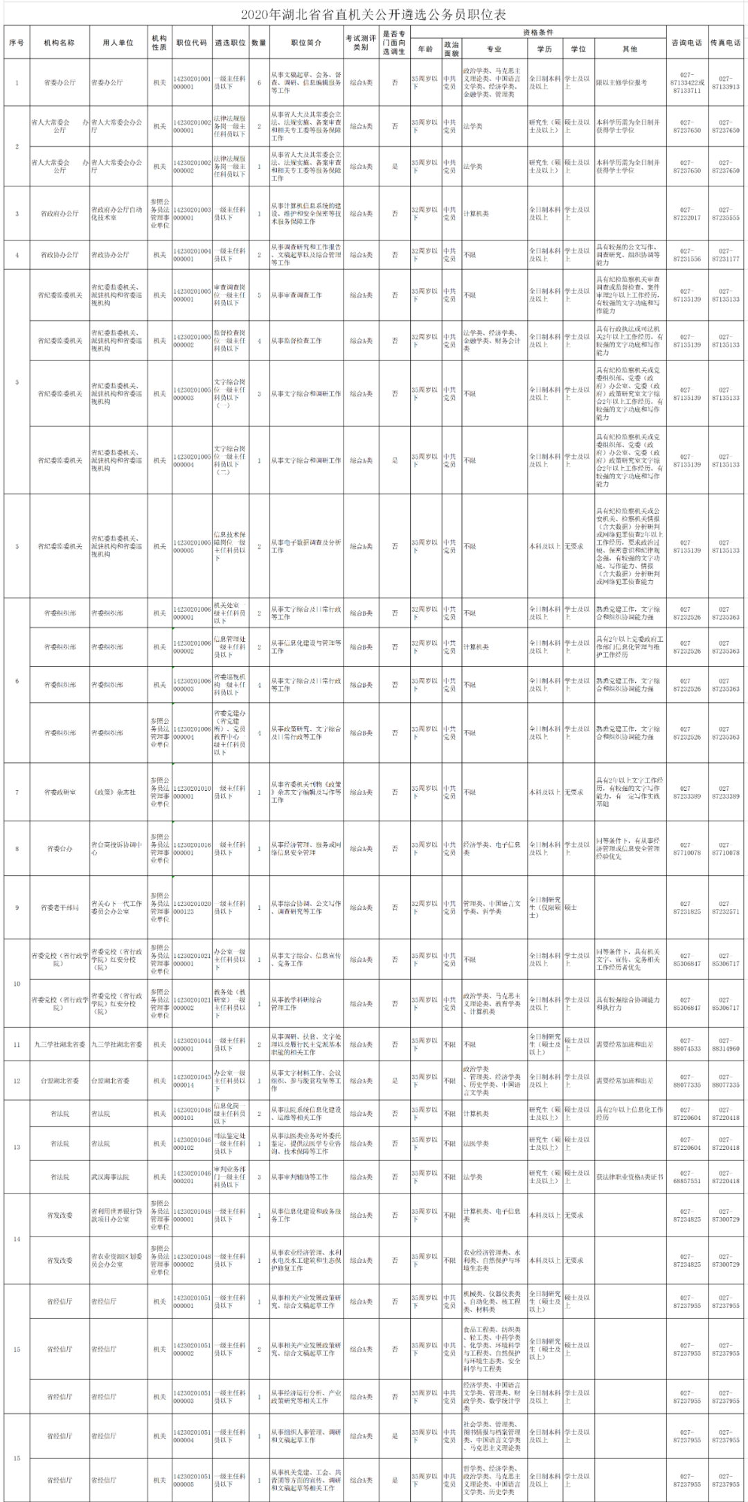 今天,湖北省公务员局发布2020年湖北省省直机关公开遴选公务员公告。