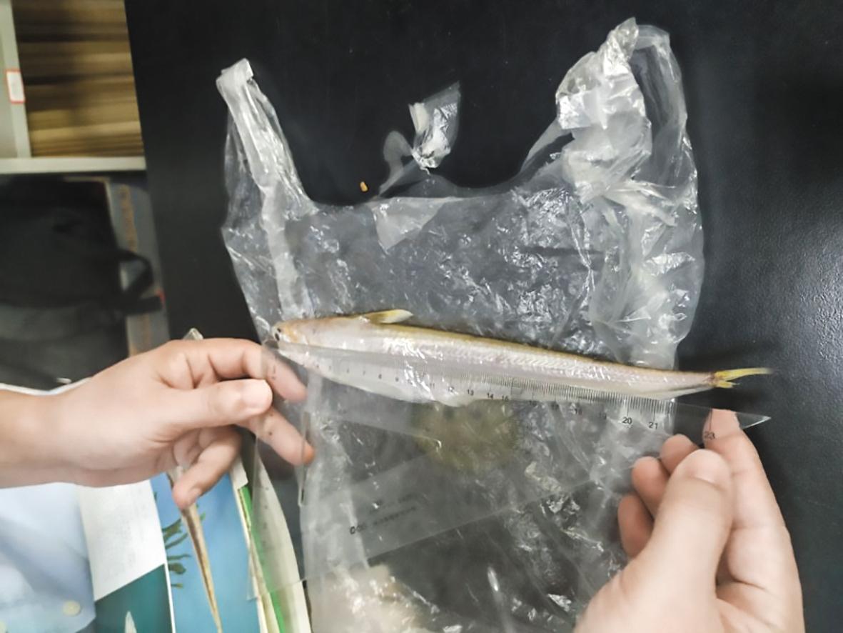 中科院水生所助理研究员刘飞介绍,“这是一条短颌鲚,也称为刀鱼、毛刀鱼或毛花鱼,属于淡水鱼类,我们平时所说的刀鱼还有一种是指长颌鲚,两者外形很相似,但长颌鲚属于洄游性鱼类。”