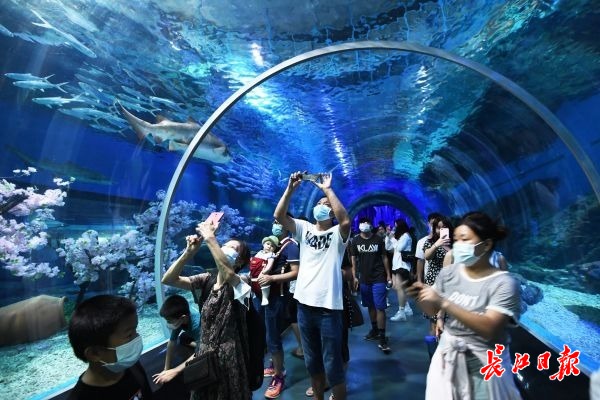 8月10日,武汉极地海洋公园里游客如织。记者詹松 摄