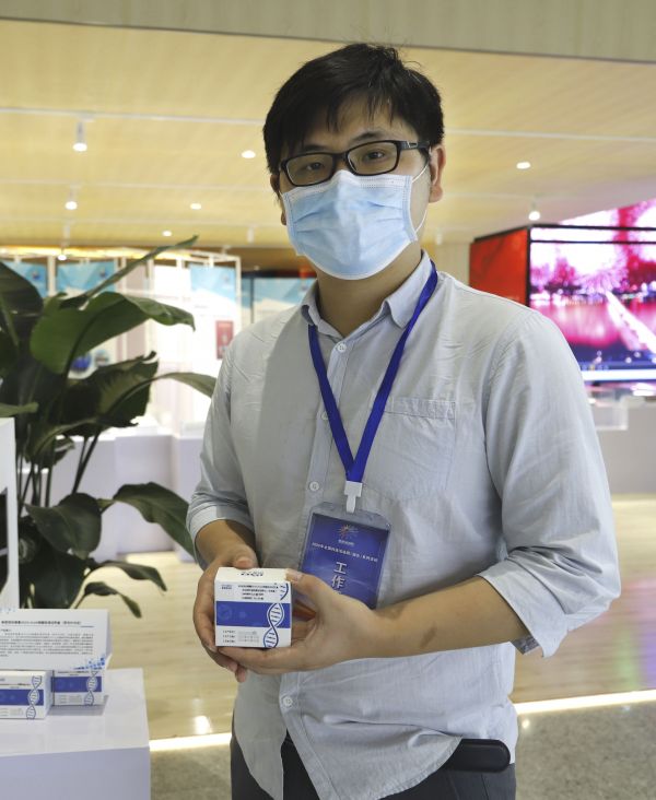 华大基因展示的新冠病毒核酸检测试剂盒。