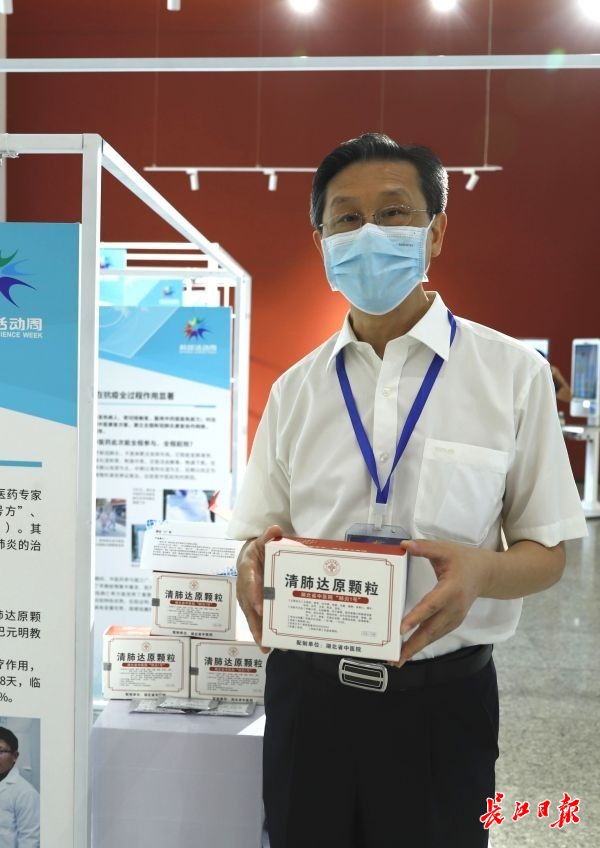 湖北中医院展示所研制的抗击新冠肺炎的中成药“清肺达原颗粒”。
