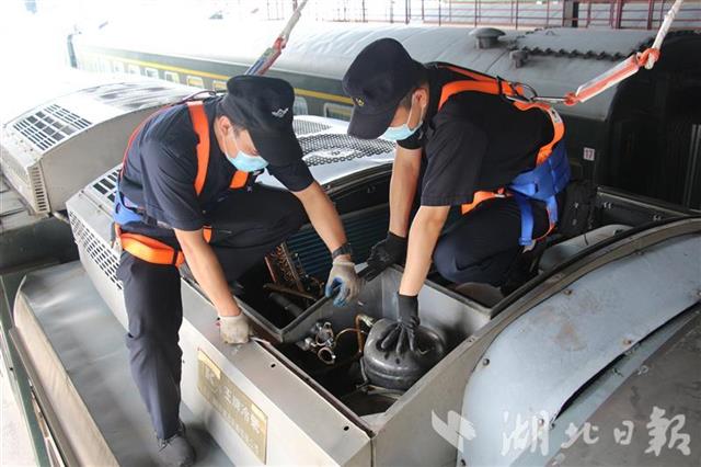 湖北日报讯(通讯员少杰)8月以来,武昌客车车辆段武昌客整所的10对21组普速列车逐步恢复开行。酷暑八月,在这样的高温天气下,空调成了人们离不开的设备,尤其在长途旅客列车上。8月26日中午11点多,武昌客车整备场上热气蒸腾,地面温度高达60℃,人在太阳底下站上几分钟就会大汗淋漓。