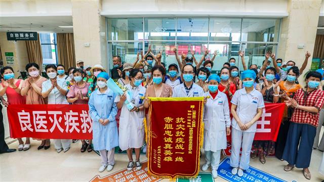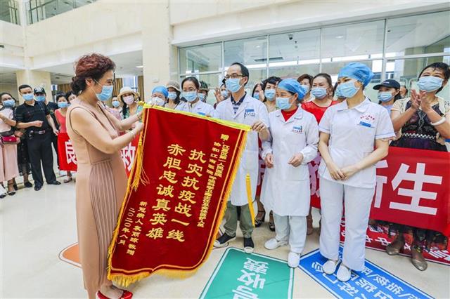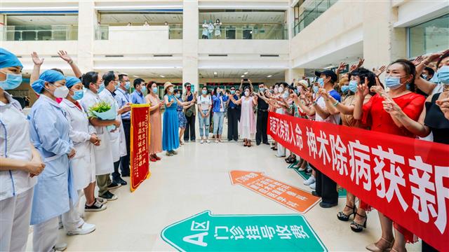 照顾过袁丽琼的护士长余丹也站在一旁,眼角眉梢都挂着笑意。余丹告诉记者,看到袁丽琼的身体状况和精神状态特别好,她打心眼儿里感到高兴。