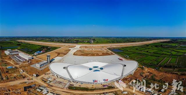 荆州机场是湖北省重点建设工程,机场设计飞行区指标为4C,按满足2030年旅客吞吐量100万人次设计,将建设成为国内支线机场,并打造成长江经济带航空运输的重要节点。预计2021年春节前,荆州机场将实现通航,初步拟开通国内12个城市的航线。(视界网 黄志刚 摄)