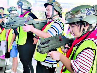 第一次摸枪,即便是仿真玩具枪,孩子们也爱不释手。