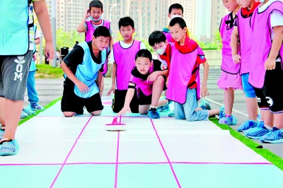 通过暑期社区“云托管”,孩子们感受冰壶运动的魅力。