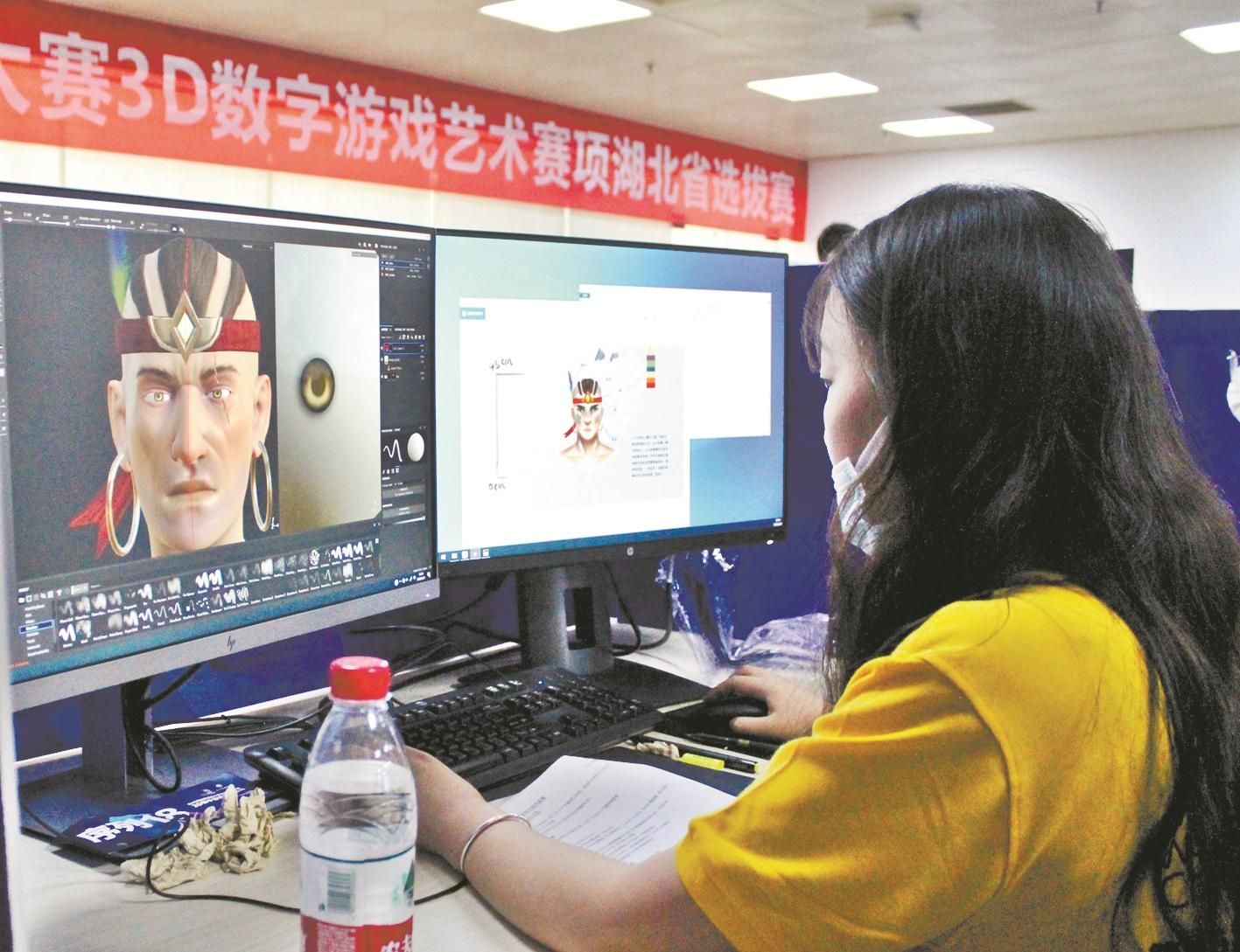 “我设计的终极英雄,是一个有着印第安人风格的部落首领,他带着圆形耳环,头上插着羽毛,黝黑的脸上还有打斗留下的伤疤。”3D数字游戏艺术赛项湖北选拔赛第一名、长江职业学院学子曹紫凤这样描述她的设计作品。因为特色鲜明,完成度高且速度快,她的作品给赛事组委会留下了深刻的印象。