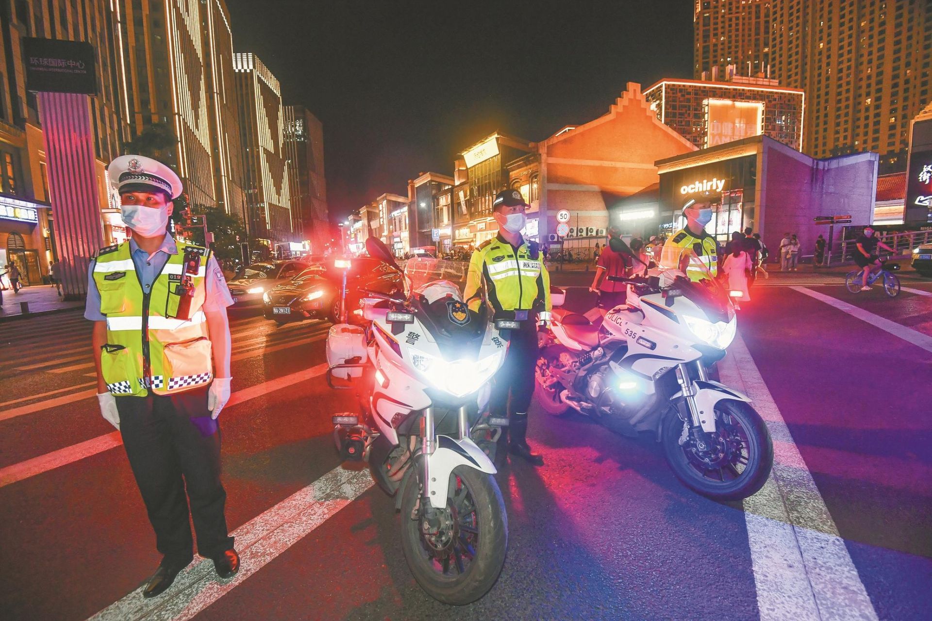 8月26日晚8时,夜间大巡控正式启动,4900余名警力迅速奔赴“护学”“护商”“护企”“护景”、保民安的实战岗位。当晚,全市设置夜间巡逻线路347条、驻巡点366个。警灯下,一个个身影穿梭在大街小巷;夜幕中,一个个捷报接连传来。