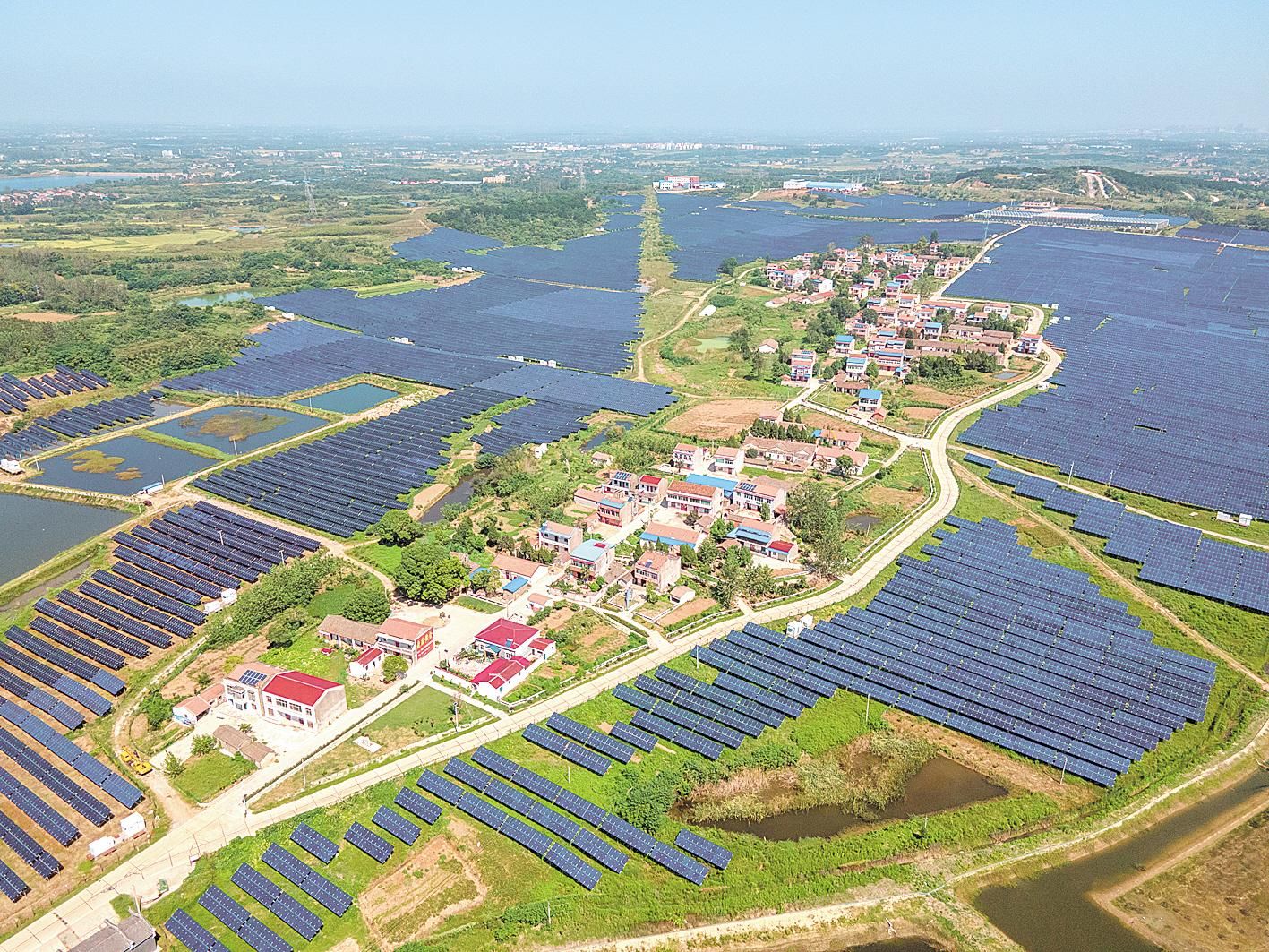 8月26日,孝昌县邹岗镇林场新村,一块块蓝色的光伏电池板整齐地排列在村子周围。据了解,该县建有30个光伏扶贫电站,总装机量达53.764兆瓦。这些光伏扶贫电站,让贫困村有了“阳光银行”。全县共设置光伏扶贫公益性岗位2196个,惠及2167户贫困户。(湖北日报全媒记者 蔡俊 通讯员 高玉峰 摄)
