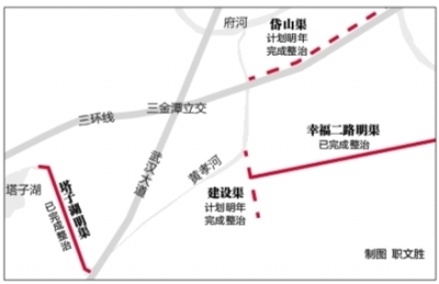 发现的问题逐个击破,第一步要截污。陈磊告诉记者,水渠两岸新建900米的截污管,让截流后的污水就近接入市政污水管网,消除了污水的来源。其次渠底清淤,引入中水让渠水流动起来,并根据专家的建议对这1.5公里的水渠进行阶梯式的分段,形成总计约1.5米的落差以提高河水流速。最后全面清理渠道两岸30米范围内的菜地、垃圾等污染物,种上香樟、桃树以及草坪灌木等植物提升水环境。