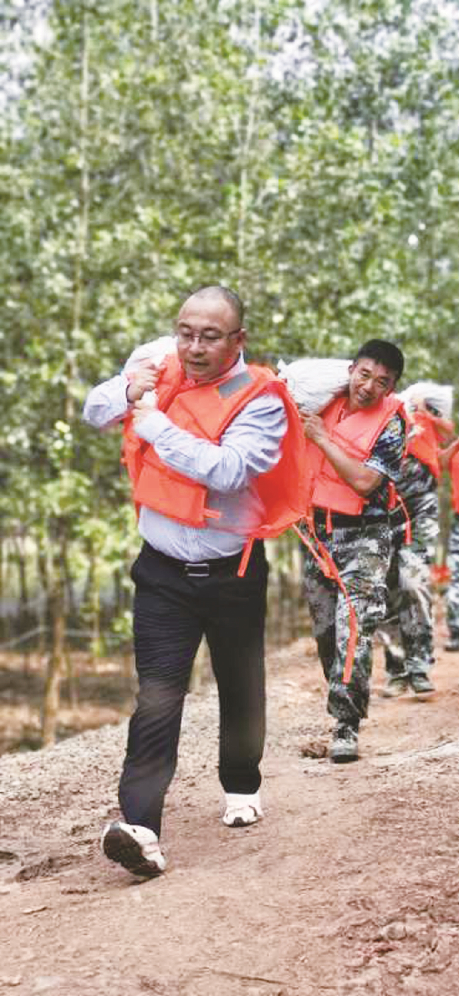 湖北运鸿集团董事长李玉保在武穴参与抗洪抢险。